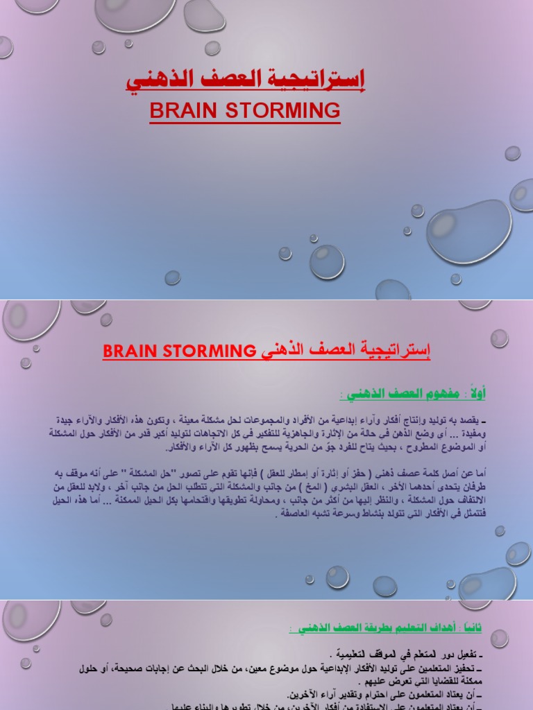 عرض تقديمي التدريس بأسلوب العصف الذهني