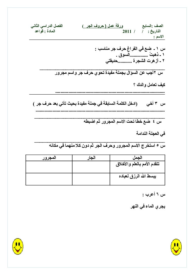 Doc ورقة عمل الجر بحرف الجر Omayma Nojmah Academia Edu