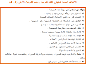 الاهداف العامة لتدريس اللغة العربية للصف الأول الابتدائي ملف انجازاتي
