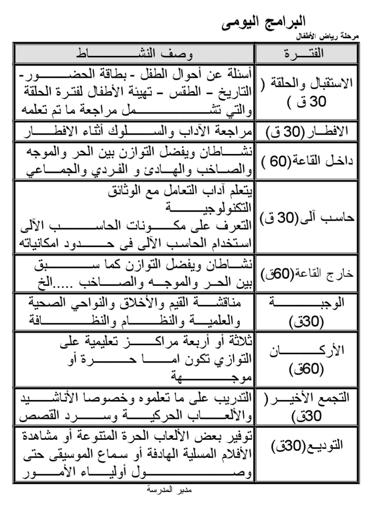 وضع خطة البرنامج اليومى بالروضة جدول نحو روضة أمتع وأكثر إفادة Facebook