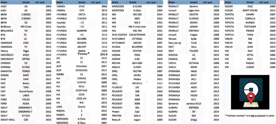 قائمة السيارات المقبولة فى شركة أوبر Gci Uber Egypt Partner جي سي اي وكيل اوبر في مصر