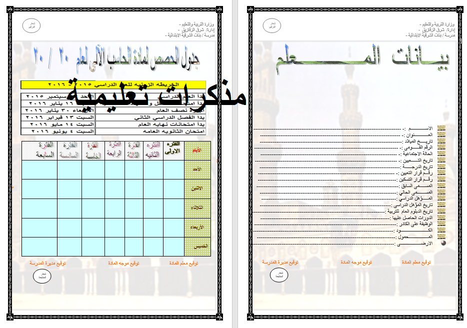 السيره الذاتيه للمعلمه في دفتر التحضير Ra2ed