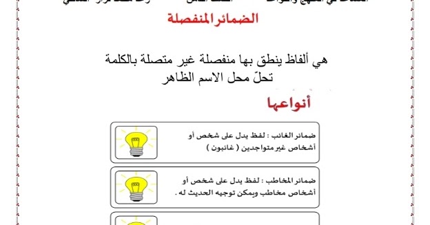 اللغة العربية شرح الضمائر المنفصلة للصف الرابع ملفاتي