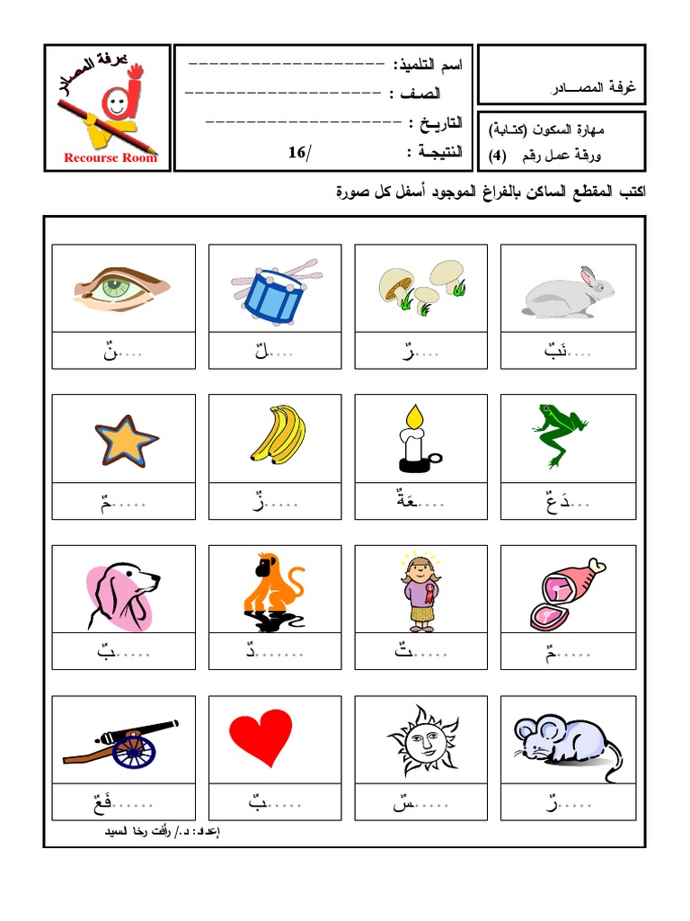 اوراق عمل لتدريس المقطع الساكن وتعليم نطقه للتلاميذ بإتقان