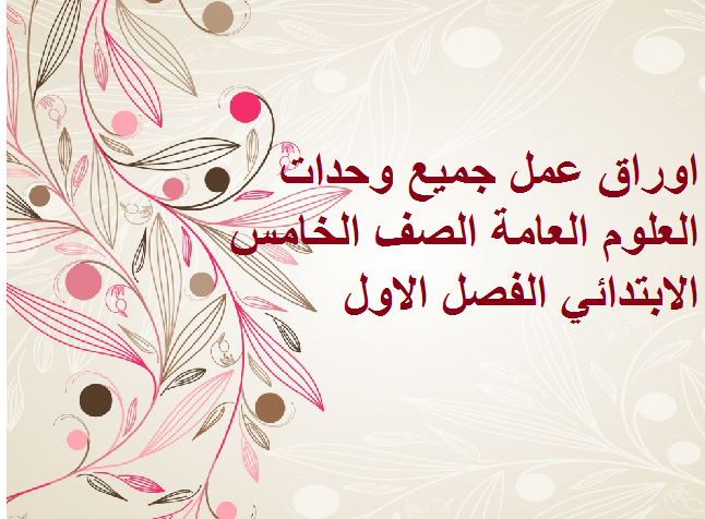 اوراق عمل لمادة العلوم للصف الخامس الابتدائي الفصل الاول امتحانات و اختبارات