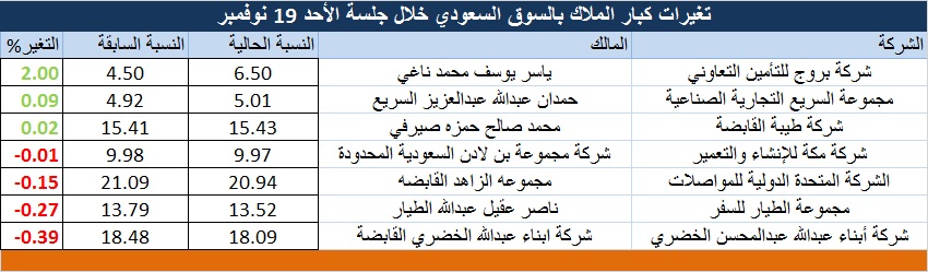 7تغيرات بحصص كبار الملاك في السوق السعودي أحدها من نصيب الطيار معلومات مباشر