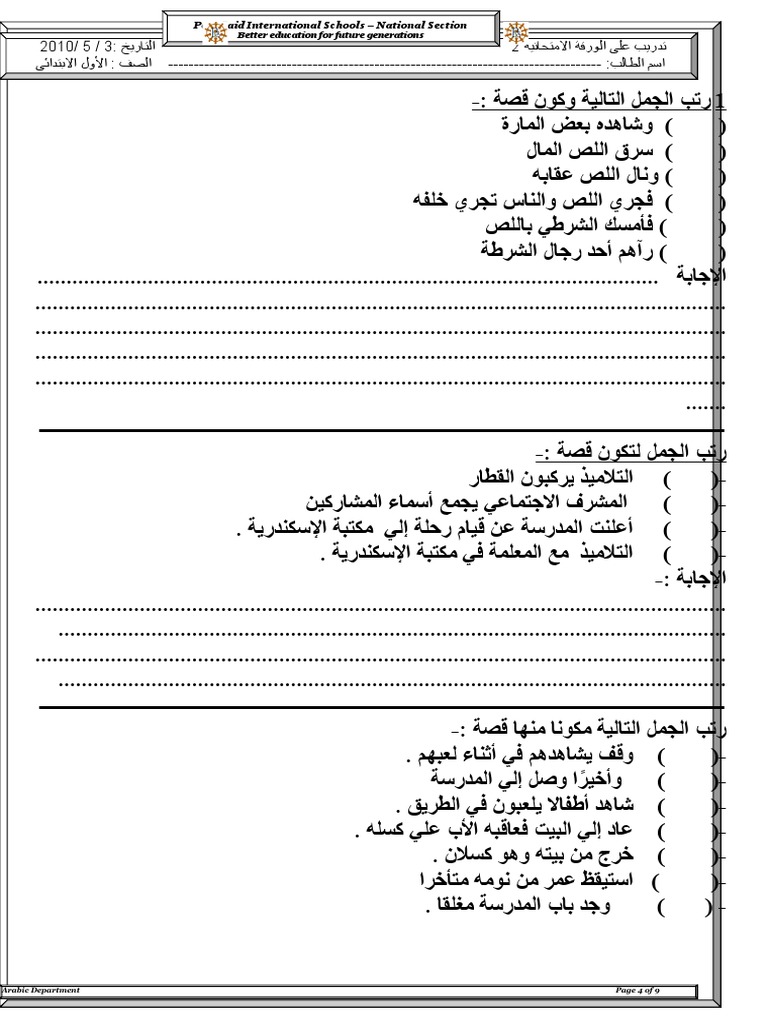 اللغة العربية أوراق عمل علامات الترقيم للصف الرابع مع الإجابات ملفاتي