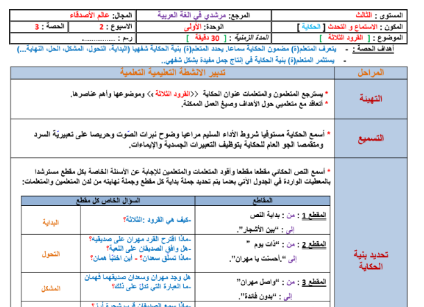 جذاذات اللغة العربية الأسبوع 1 من الوحدة 1 مرجع مرشدي في اللغة العربية المستوى الثالث ابتدائي