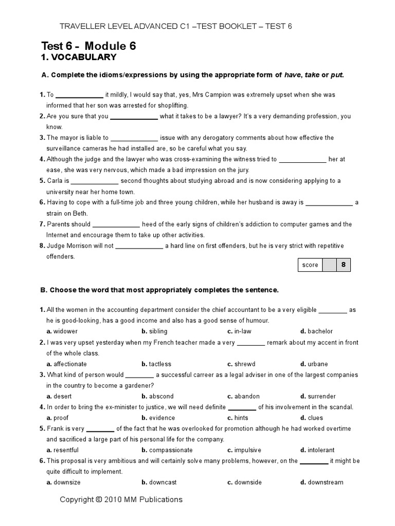 Test 6 Module 6 Traveller Intermediate B1 Test 6 Module 6 Copyright C 2010 Mm Publications Pdf Document